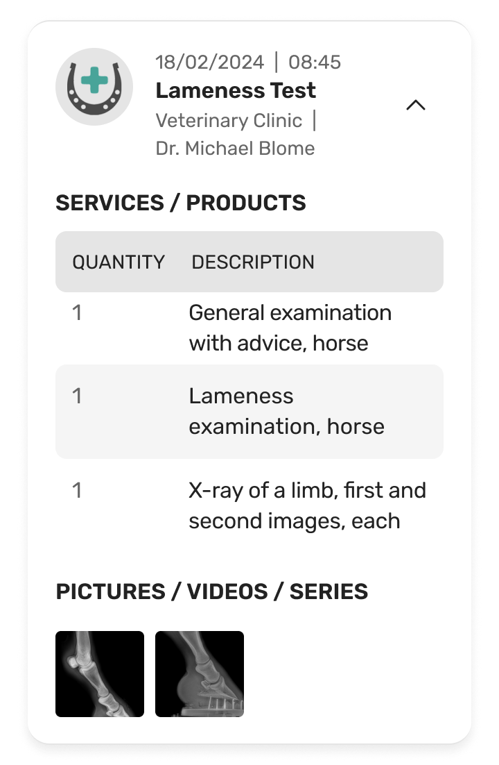 Guard. All. Data. The app stores everything from vaccination certificates and medications to X-rays and ultrasounds. With petsXL, your medical records are always with you: on vacation, at the stables, at the vet’s office, or in case of an emergency.