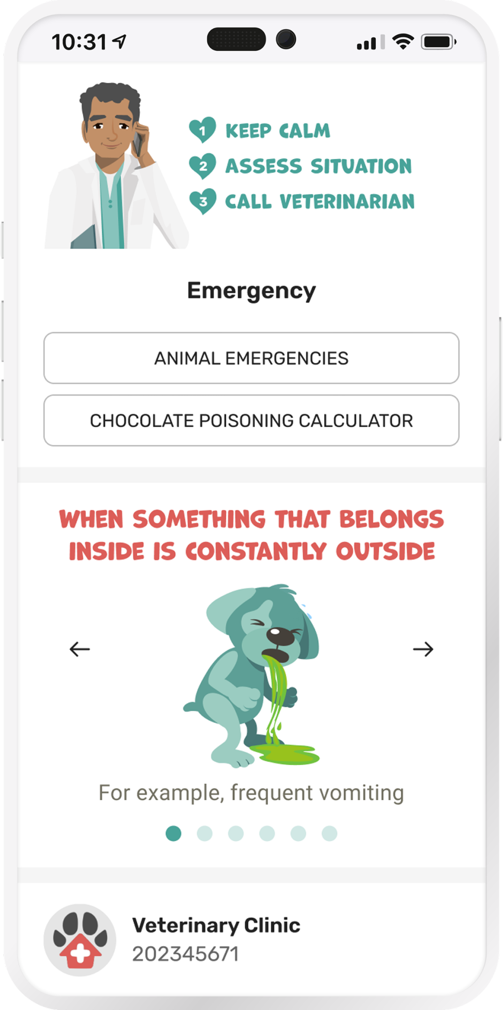 Click. Check. Save the Day. With illustrations and emergency articles, you’ll recognize critical situations right away — and know when it’s time to head to the vet.